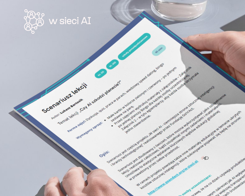 Czy AI szkodzi planecie? to scenariusz lekcji, powstały w ramach projektu W sieci AI -ciemniejsza strona sztucznej inteligencji i branży technologicznej.